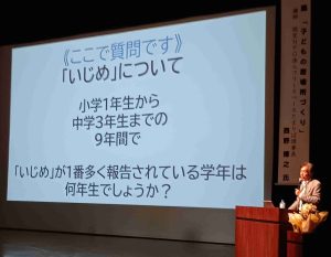 10/13(月・祝)に開催されました。「子どもの居場所づくり」をテーマに、西野博之氏(認定NPO法人フリースペースたまりば理事長、川崎市子ども夢パーク・フリースペースえん総合アドバイザー)に講演いただきました。 → 参加者の声